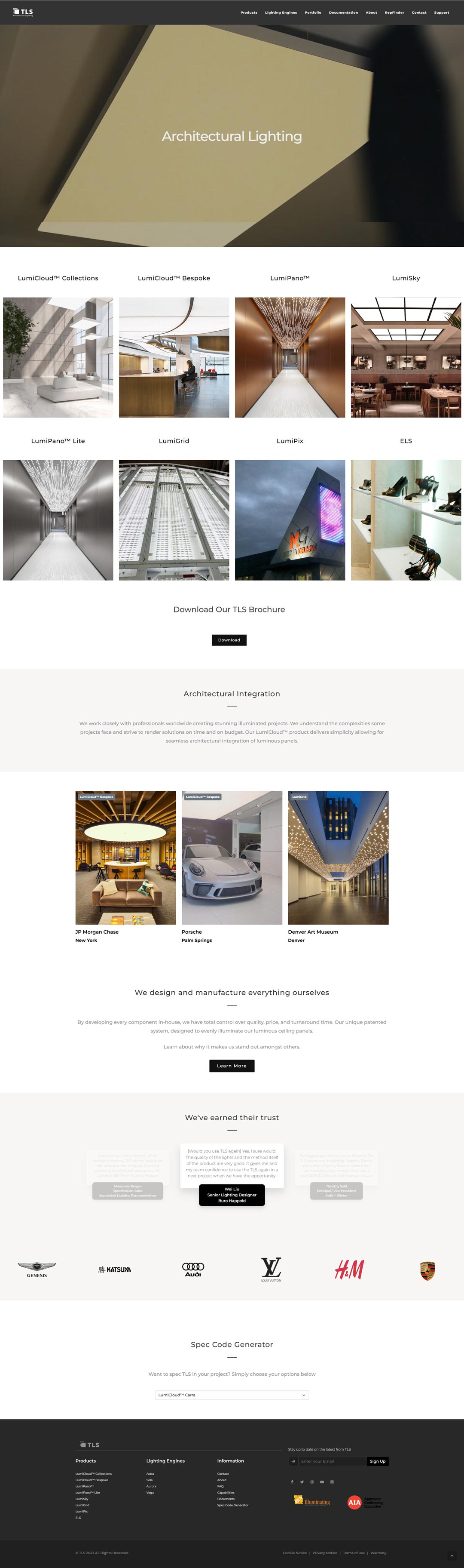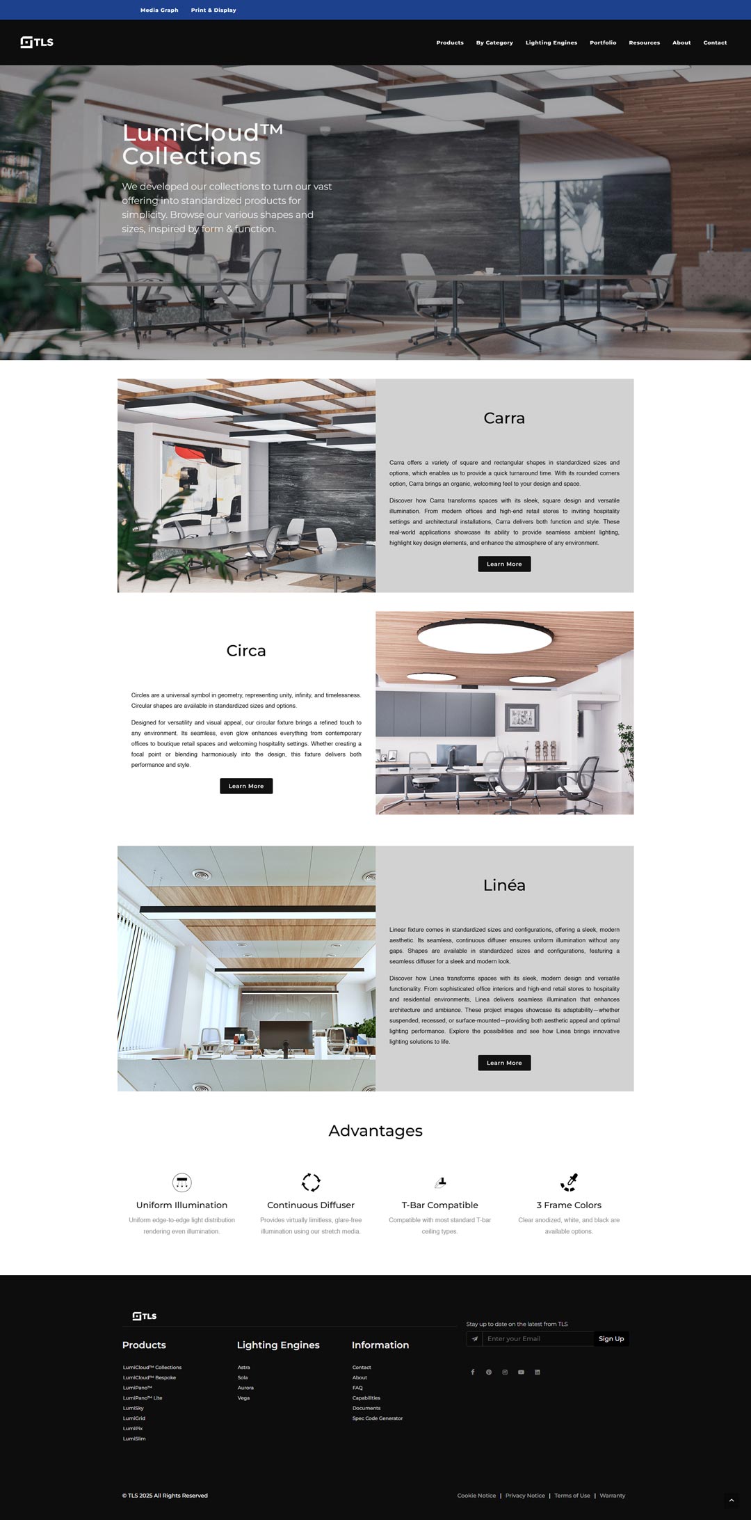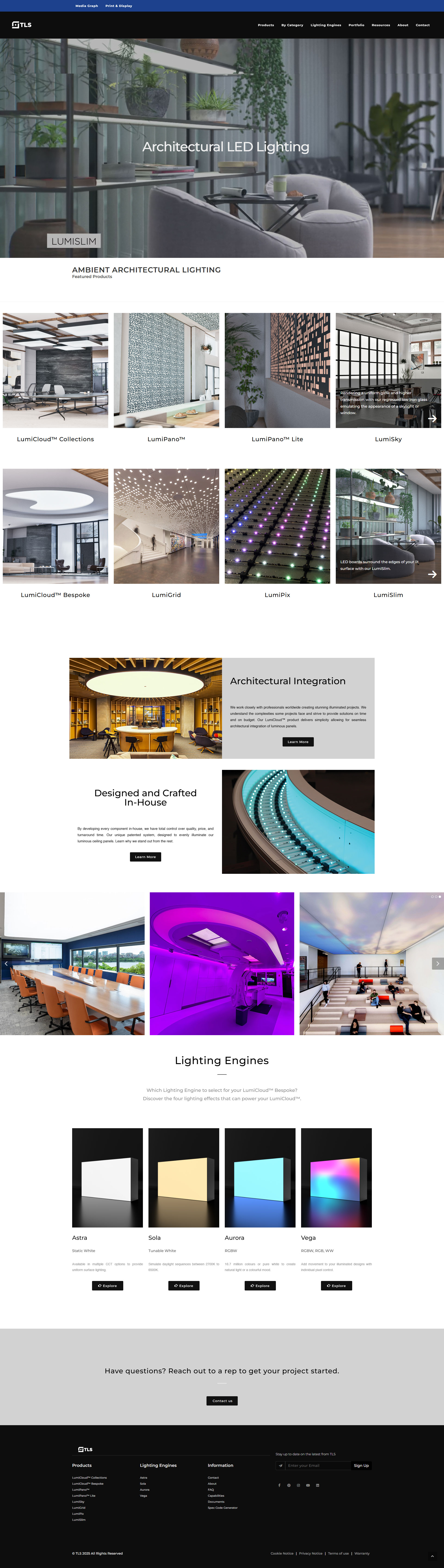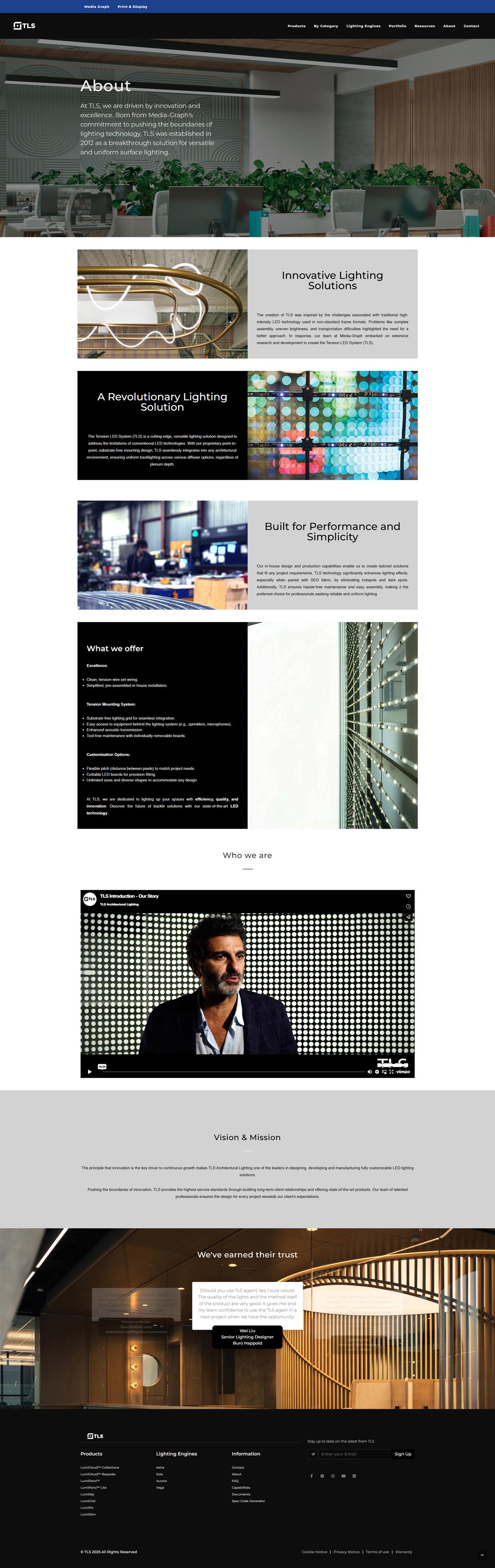 As part of a global rebranding of Media-Graph and its specialized brands, the TLS website required a significant user experience overhaul. The brand had evolved into a forward-thinking player in architectural LED lighting solutions, but its digital presence did not reflect this transformation.